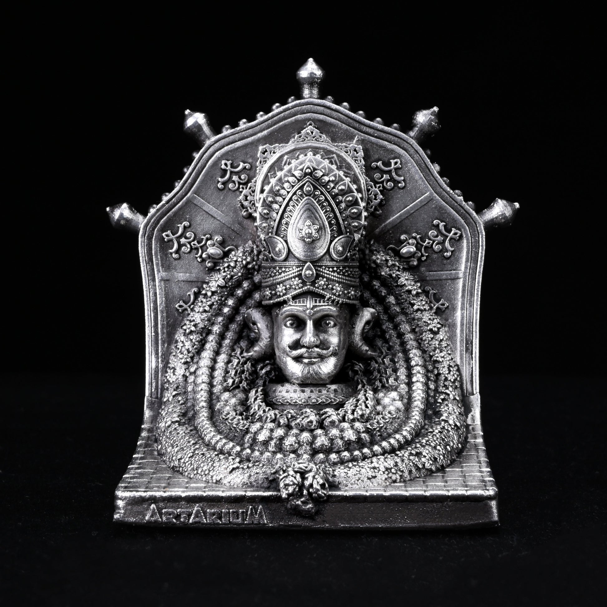 Ideal for any sacred space or home decor, this silver idol not only enhances your surroundings with its beauty but also invites blessings of prosperity and spiritual fulfilment. Each detail, from his facial expression to the Mukuta (crown), reflects the eternal divinity and charm of Khatu Shyam Ji.